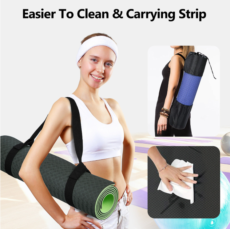 Feature Highlights: This eco-friendly TPE yoga mat measures 183cm x 61cm x 6mm, providing comfort and flexibility for all body types. Its double-sided non-slip surface ensures safety for yoga or fitness exercises on all types of flooring. Certified to comply with EU chemical safety standards, it enhances buyer confidence and improves market access.