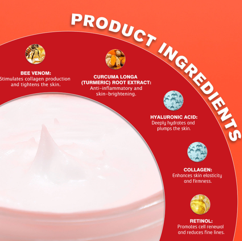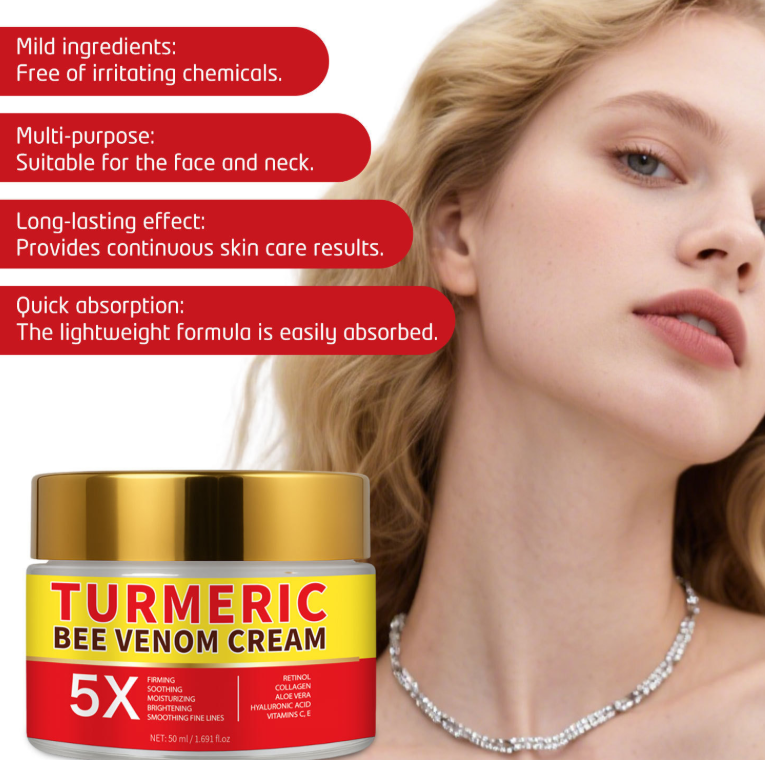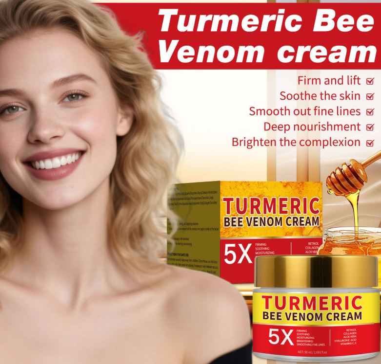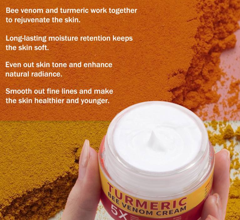 The Turmeric Bee Venom Cream is a powerful fusion of bee venom therapy and turmeric root extract, crafted to restore vitality, combat visible signs of aging, and enhance natural radiance. This lightweight yet deeply nourishing cream helps to smooth fine lines, improve firmness, calm irritation, and brighten dull skin — making it an essential part of your daily skincare ritual.