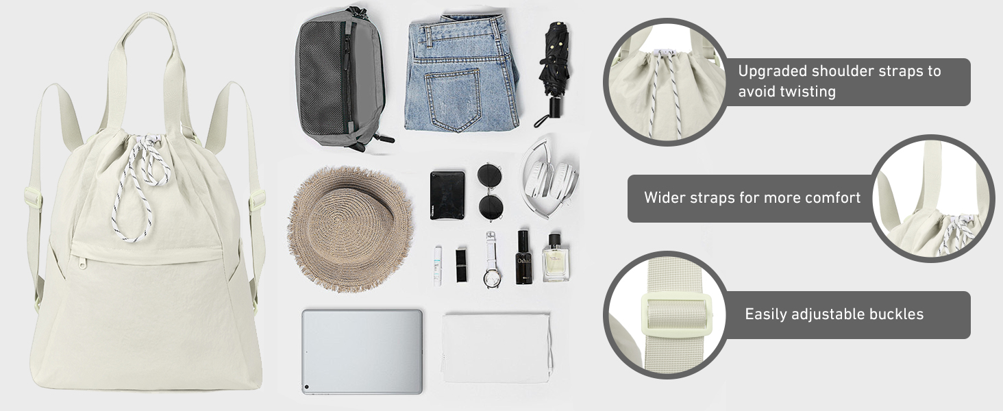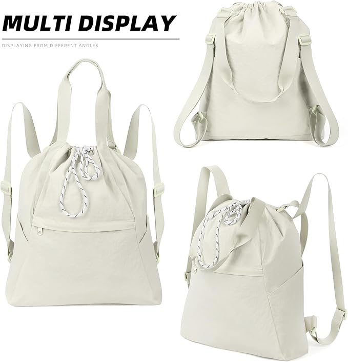 Multiple Uses: The drawstring backpack can be carried by hand, on one shoulder, or as a backpack, adapting to different occasions and styles.